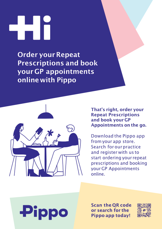 We are now using PIPPO the online booking platform to make it easier for you to book an appointment or order a repeat presciption. Please download the app using the QR code below. For more information and instructions, click HERE.
